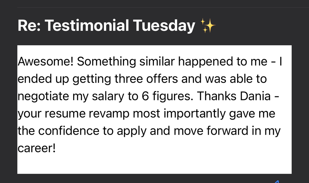 Dania is a HR & Marketing Expert specializing in helping people recognize their worth at work. She has seen over 20K Resumes throughout her career and has over 10 years of experience Revamping Resumes, and has personally helped over 2000 people land higher-paying jobs in the past 3 years. She has helped her clients generate over $1.7M in Salary Increases, and has helped ppl get higher paying jobs in industries where she has literally no experience. Since the start of 2020, she has helped hundreds of professionals in top industries such as Tech, Healthcare, Finance, Logistics, and Sales secure high paying remote positions.