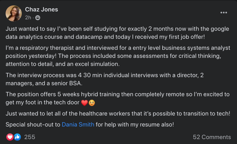 - Access to our private Facebook Community (Dream Job Club).